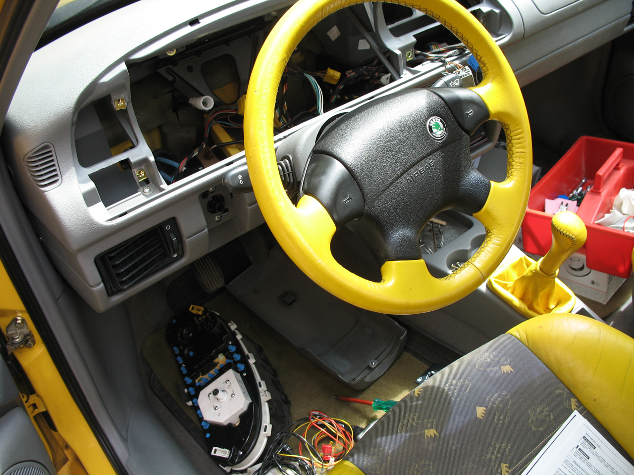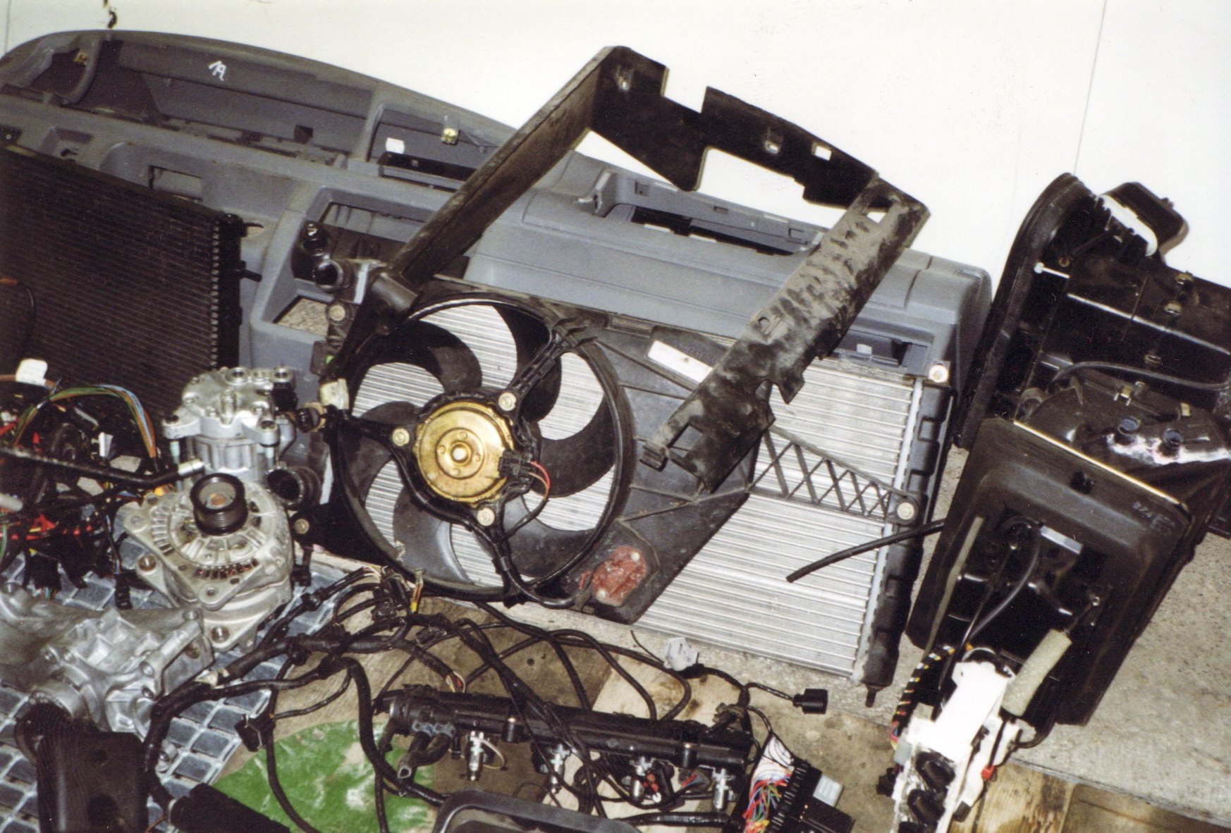 Prasklá klika výklopné stěny stavba Felicia FUN - fotogalerie zde Podvozek a motorový prostor vyhoření el. motorového svazku (bude dodáno)